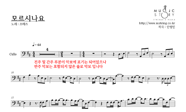 [뮤직스토리 수강생이 아닌 분들은 아래 링크로 이동 후 악보를 구매해 주시기 바랍니다]